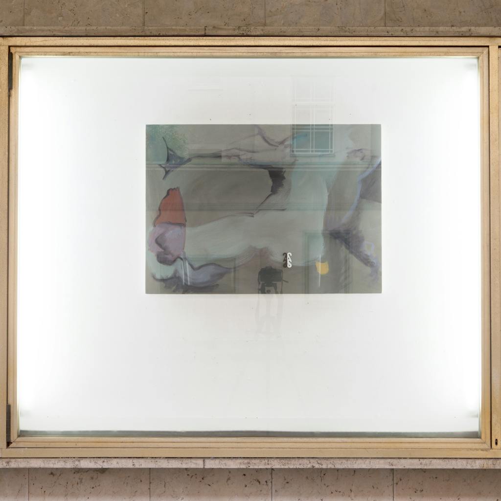 Lukas Quietzsch’s works are productive acts of cyclical self-effacement. A painting is made and then scrubbed out, then made and scrubbed out again until some kind of consensus materializes. The painting doesn’t usually begin with some mindspring from the artist, which is then corrected and honed, but rather a found drawing. Using someone else’s drawing is worlds apart from Warhol blowing up a press photo of Elvis. Pop Art and appropriation repositioned well known things into an environment that alters their reception. Lukas’ treatment of his borrowed motifs — which are decidedly not familiar — is so obfuscated that they become neither his, nor the original artist’s, but instead sidestep authorship and masquerade as some hazy piece of our collective unconscious. His paintings occupy a limbo in which the usual hallmarks of an artistic hand are clouded, as are the recognizable features of appropriation. Pentimenti here is like a screen burn, as if earlier iterations were left so long they indelibly influence the picture, no matter how many changes are stacked on top. A gridded undergirding, made starker by the frottage of washing pigment from the surface, gives the impression of some kind of pixelation. Except this matrix of squares has no influence on the image. Seemingly nothing has an influence on the image — despite every element of the process being devoted to it — leaving the sensation that the paintings could be different if we looked again in five years or five decades.