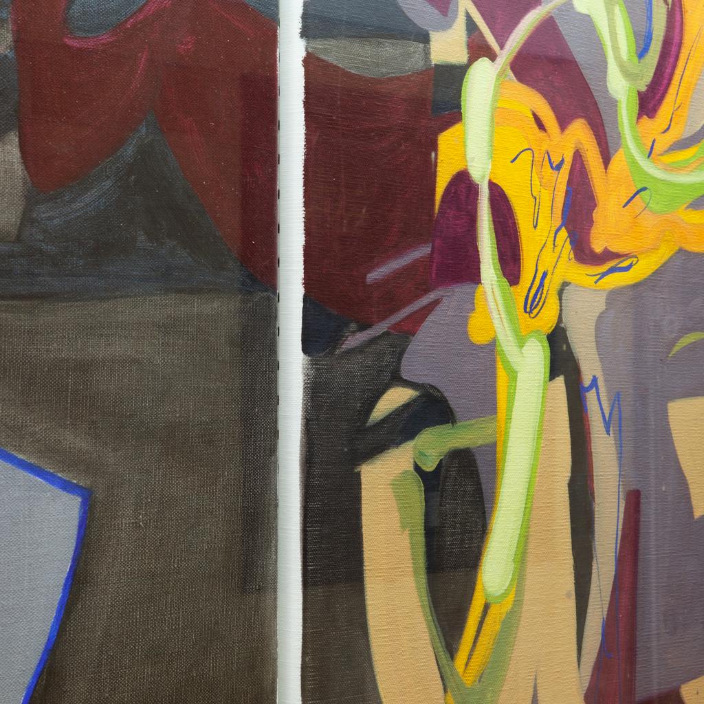 Lisa Jo’s contrived abstractions could not have been made without a digital tool that imperfectly replicates the tactile experience of making a painting. In a way they are a stack of skeuomorphism — an imitation of one thing imitating another. This uncanniness is apparent from first glance, but the how and why take longer to work out. The painterly falsehoods that are programmed into the iPad app, but remain untranslatable back into oil, create a tension between the artist’s hand and the synthetic perfection of the digital mark. Once returned to paint, there are revealing fissures in facture, changes in opacity, line weight and texture that are inherent to one medium but not the other. Yet, Lisa’s compositions, while clearly painted, don’t coalesce into something that fits the schema for painterly abstraction. They picture a venn diagram between digital and physical with nothing yet noted in the overlapping center. The search to find shared qualities then falls to the viewer, making her meditative and ultimately foredoomed labor of copying an algorithm productive in its failure. It’s hard not to savor the slippages and rough edges as if they were a reinforcement of our humanity.