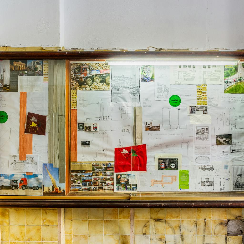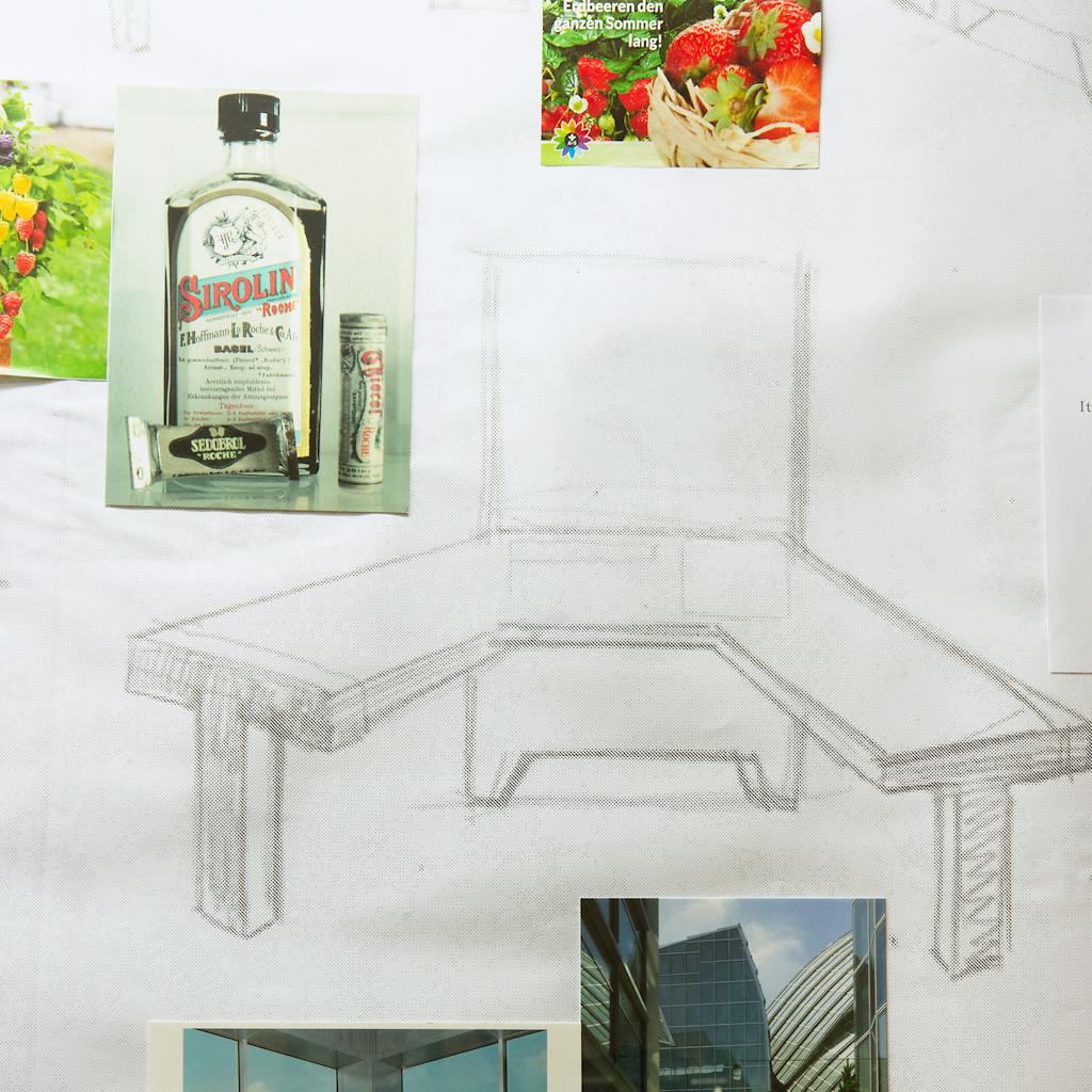 The exhibition’s opening room was filled with oversized, “blister” style pill packages containing clay pills, each emblazoned with an image of the progressive architecture that dominates Basel’s pharma campuses. Mostly invisible to visitors of the show were the backsides of the packages, which were decorated with blown up photographs of an abandoned pharmacological production plant in Brussels that Pinsky stumbled upon during the lead up to the show.